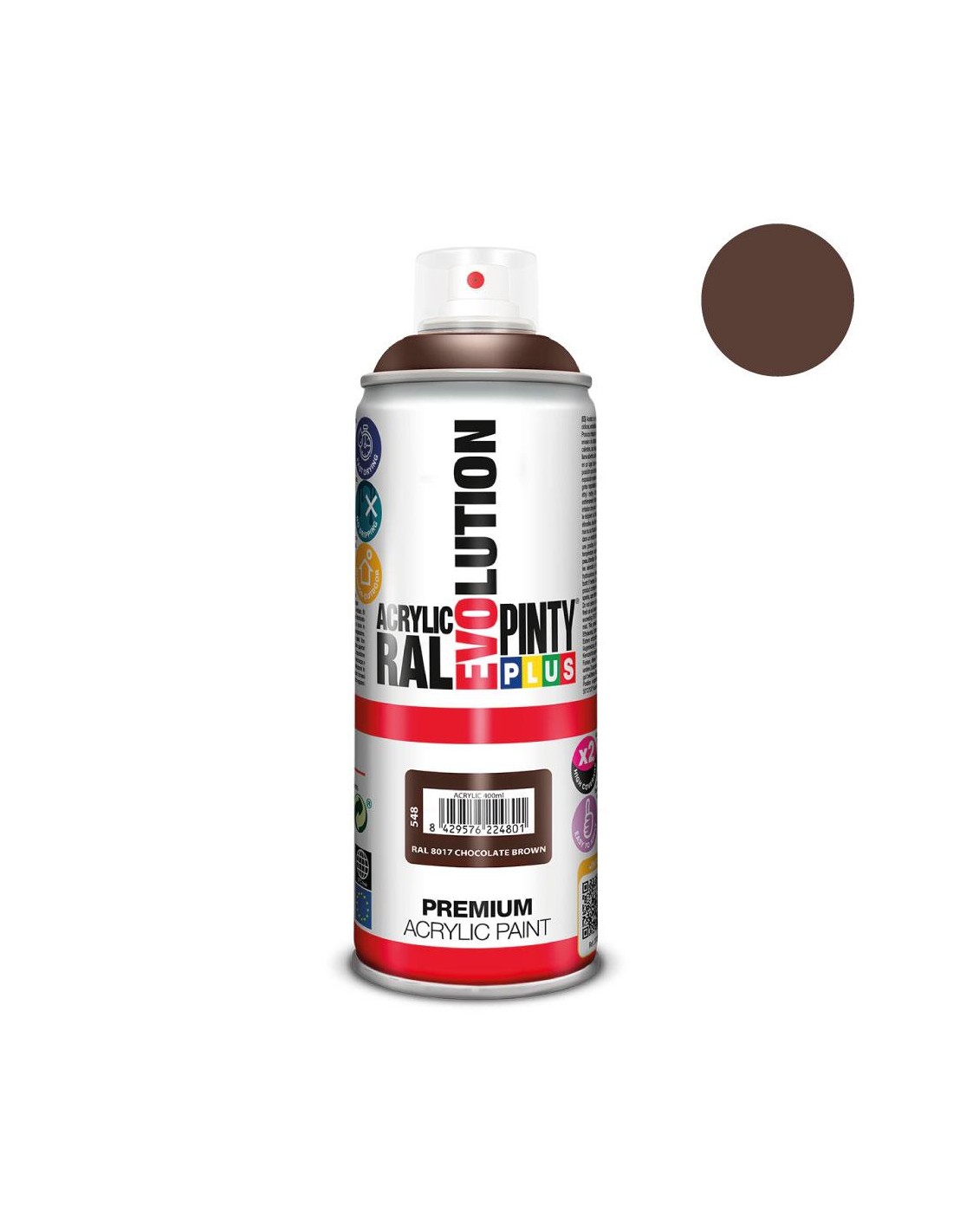 Pintura en spray Pintyplus Evolution acrílica de secado ultrarápido. Para aplicaciones tanto en exteriores como en interiores. Colores sólidos. Garantiza una excelente protección, acabado liso, y uniforme. Se adhiere sobre cualquier superficie: madera, metal, piedra, papel, cartón, plásticos rígidos, etc.