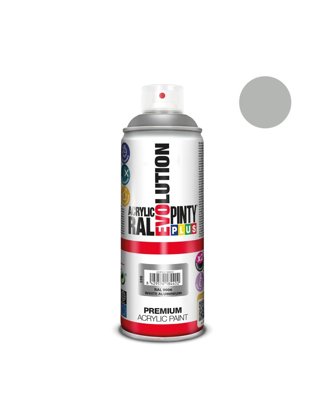 Pintura en spray Pintyplus Evolution acrílica de secado ultrarápido. Para aplicaciones tanto en exteriores como en interiores. Colores sólidos. Garantiza una excelente protección, acabado liso, y uniforme. Se adhiere sobre cualquier superficie: madera, metal, piedra, papel, cartón, plásticos rígidos, etc.