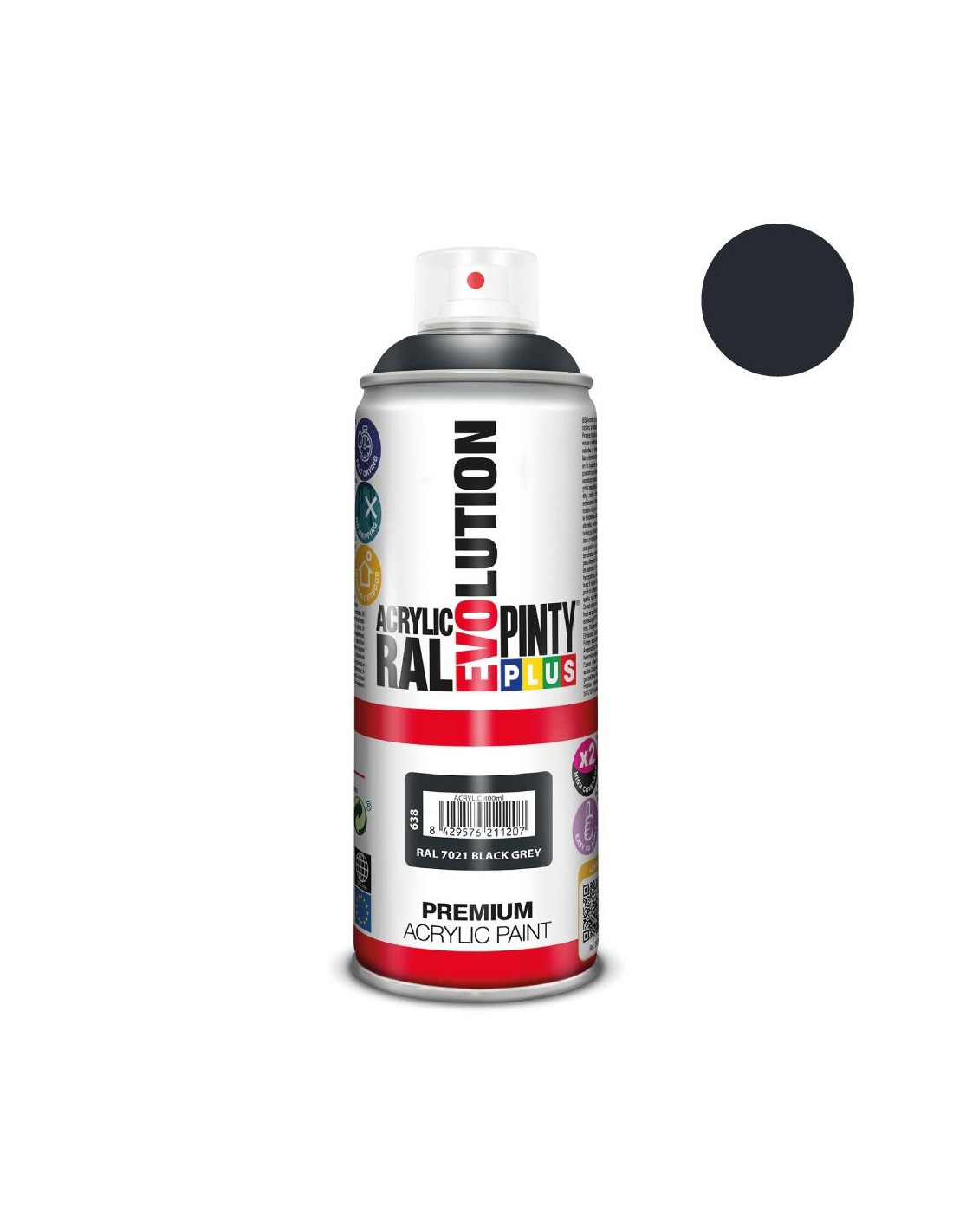 Pintura en spray Pintyplus Evolution acrílica de secado ultrarápido. Para aplicaciones tanto en exteriores como en interiores. Colores sólidos. Garantiza una excelente protección, acabado liso, y uniforme. Se adhiere sobre cualquier superficie: madera, metal, piedra, papel, cartón, plásticos rígidos, etc.