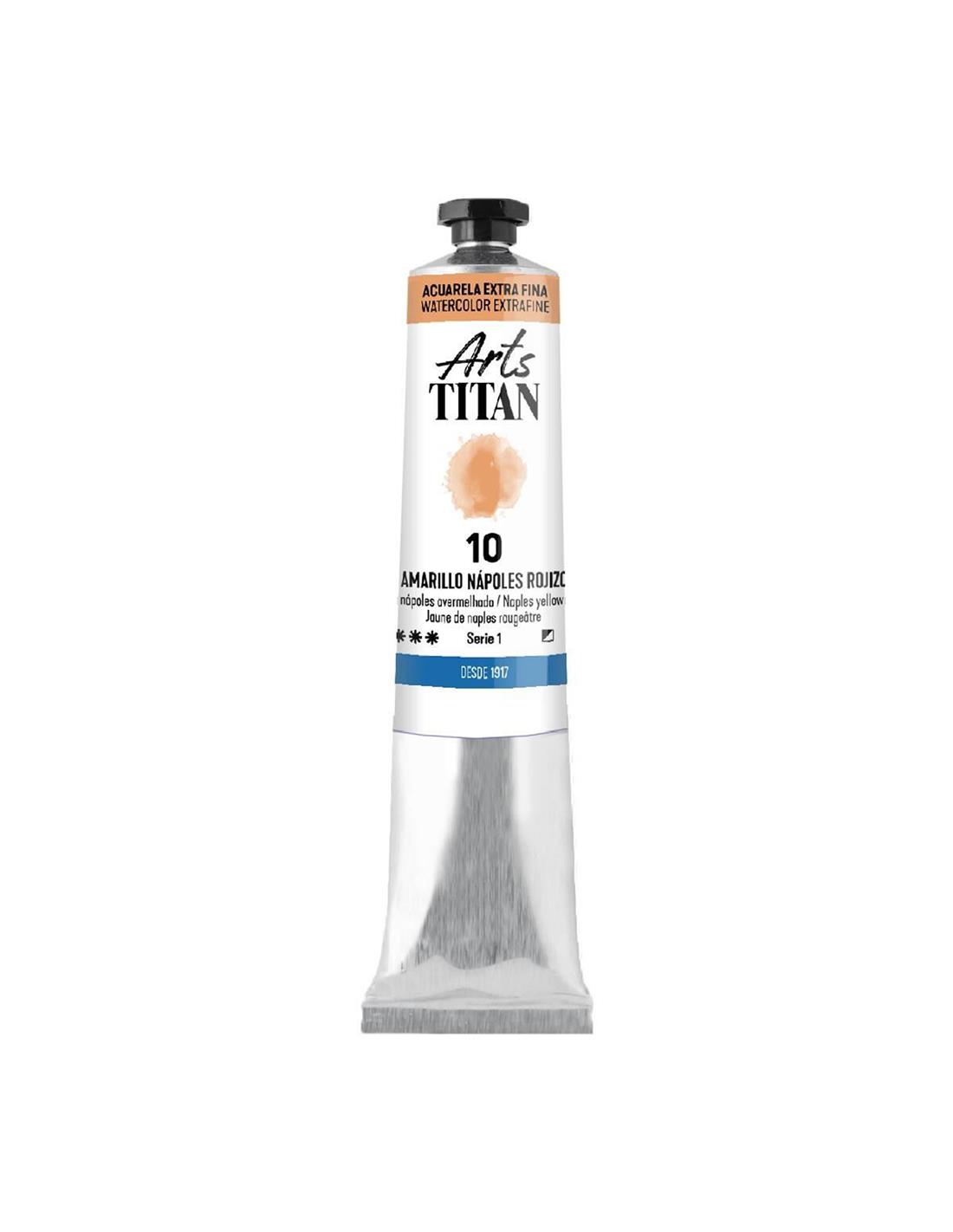 La acuarela TITAN Arts Extra Fine, se ha desarrollado con el objetivo de ofrecer al pintor una calidad suprema. Todos los tonos tienen una excelente viveza y fuerza de color, por lo que las mezclas resultantes son muy limpias, principalmente por su extraordinaria pureza y la alta concentración de sus pigmentos. Amarillo nápoles rojizo N° 10. Tubo 20 ml.