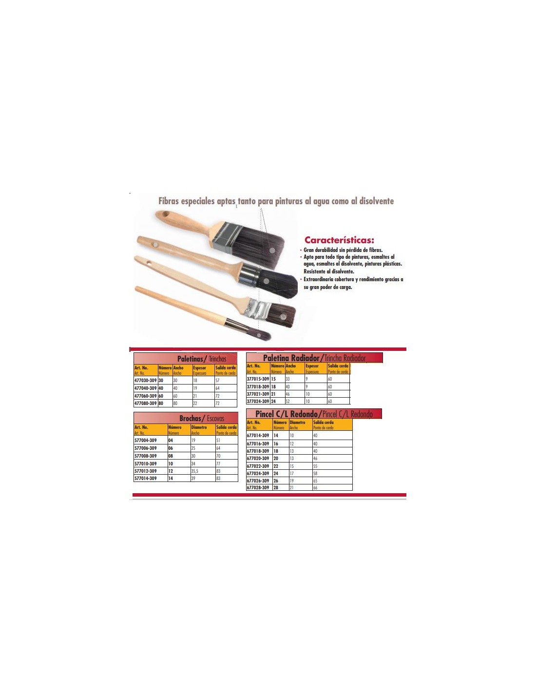 Características: Gran durabilidad sin pérdida de fibras. Apto para todo tipo de pinturas, esmaltes al agua, esmaltes al disolvente, pinturas plásticas. Resistente al disolvente. Extraordinaria cobertura y rendimiento gracias a su gran poder de carga