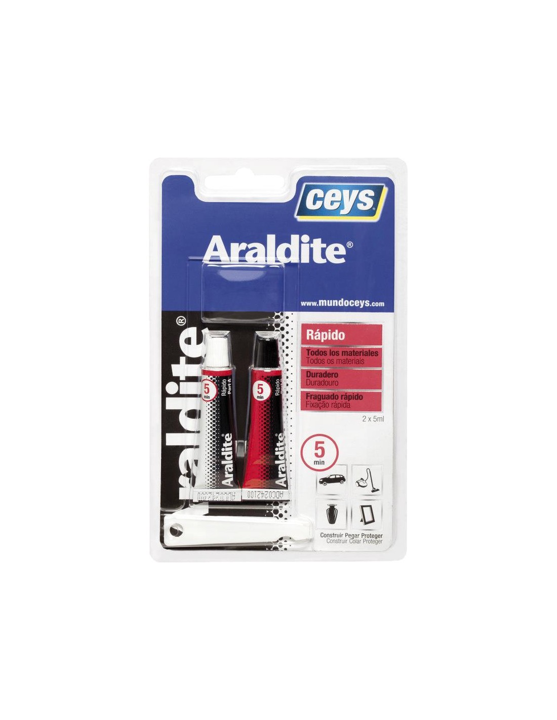 Adhesivo epoxi de dos componentes, una resina y un endurecedor, que reaccionan al mezclarse. Con un endurecimiento muy corto, por lo que es ideal para uniones rápidas. Además rellena todo tipo de cavidades que existan entre las dos superficies a ensamblar. Une prácticamente todos los materiales con excepción del polietileno, polipropileno, PTFE y silicona.