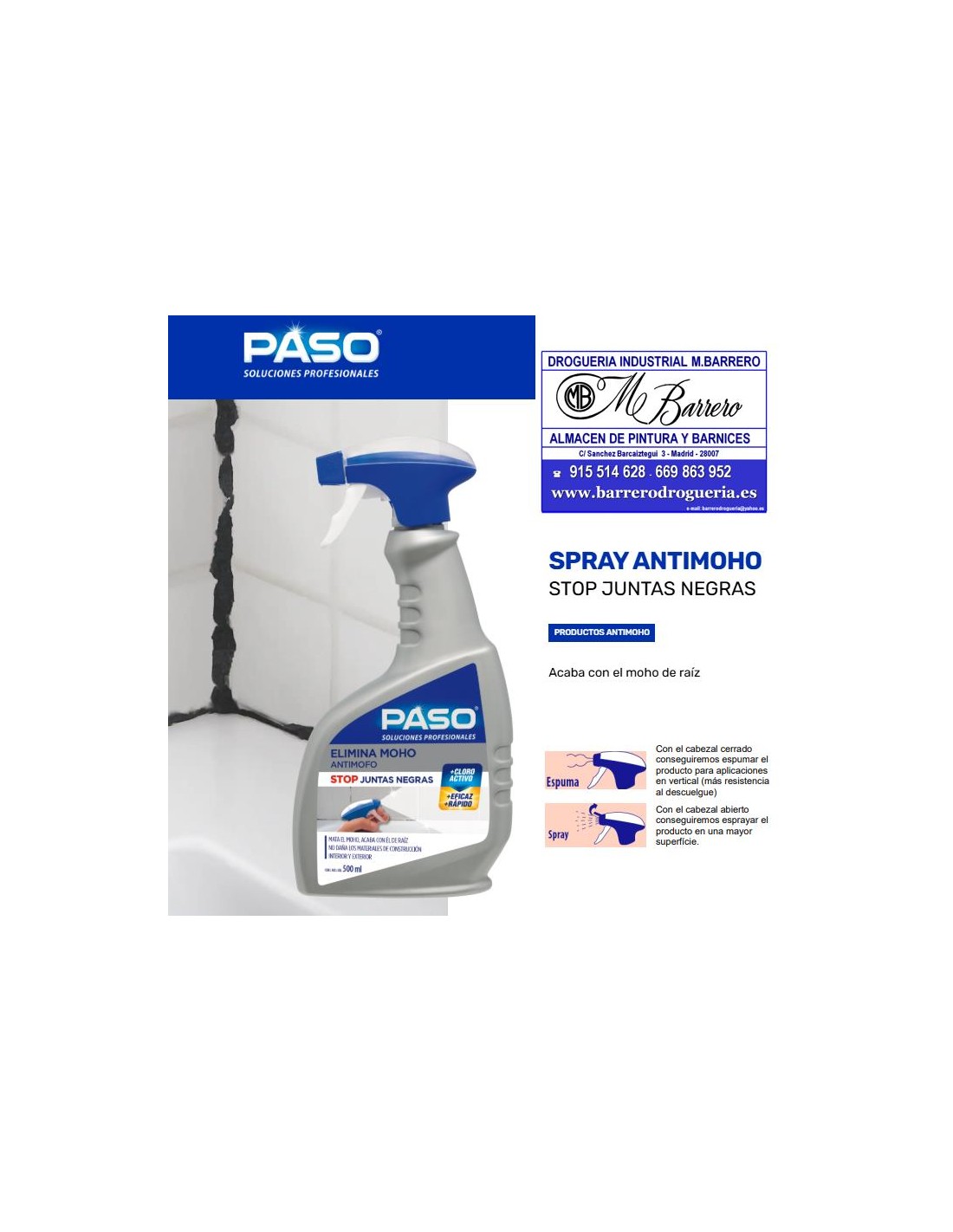 PASO Elimina Moho es un limpiador/blanqueador con acción antimoho para la limpieza profunda de manchas de moho y humedad en cualquier superficie. Su fácil aplicación no necesita frotar y su nueva fórmula con efecto desinfectante y preventivo le da un efecto duradero. Se puede aplicar en superficies interiores y exteriores.