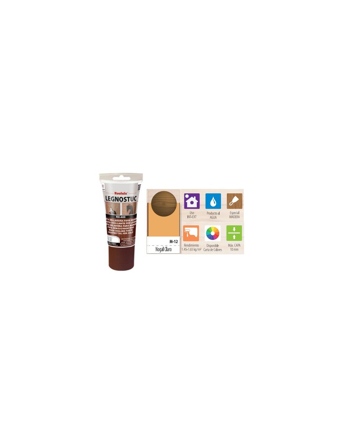 Rualaix® RX-409 Legnostuc Tubo de 200 gramos color NOGAL CLARO